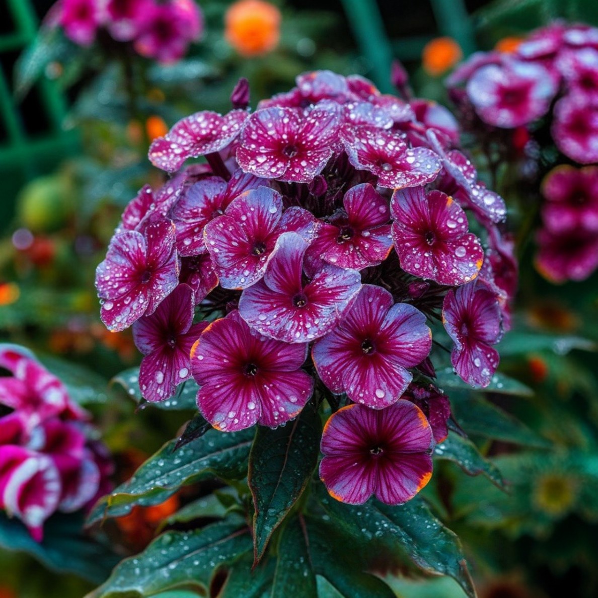 Уход за флоксами несложен: регулярный полив в засушливую погоду, подкормки комплексным удобрением весной и после цветения, а также удаление отцветших соцветий для продления цветения.